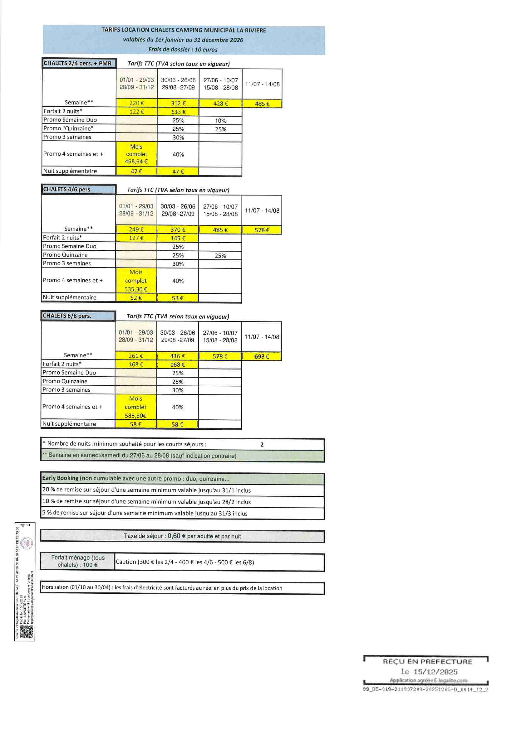 - utilisateur local : été (du 1er mai au 30 septembre) : 123.81 € par jour