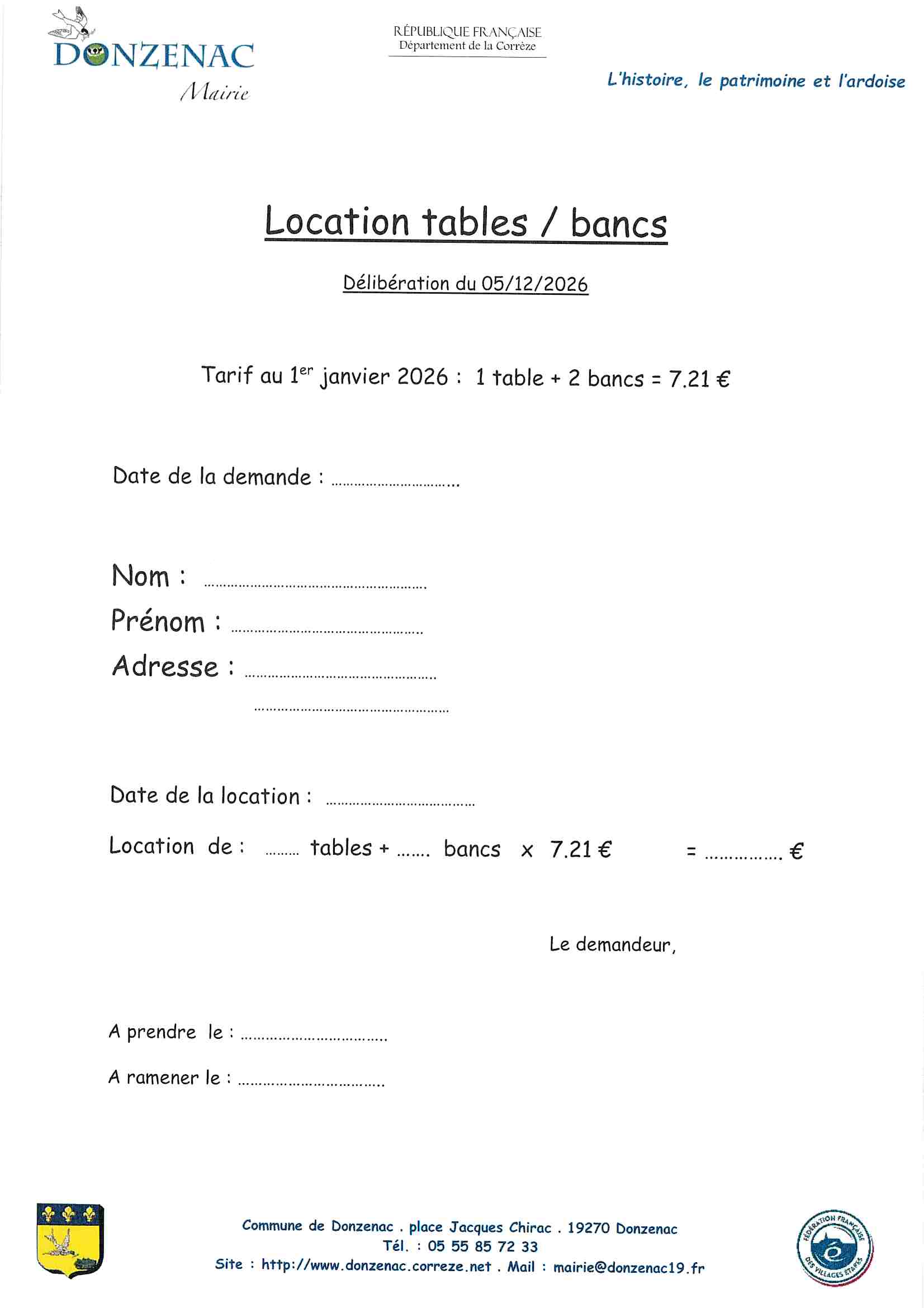Téléchargez ici le formulaire de demande de location de tables et de bancs